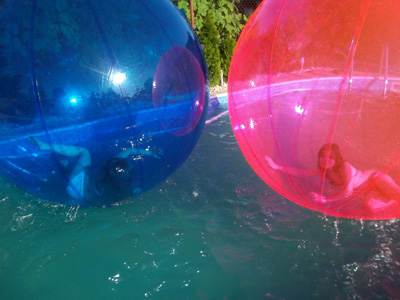 Parametre: 2 farebné vodné gule, vodná plocha alebo bazén, potrebné priestorové rozmery 5m x 5m